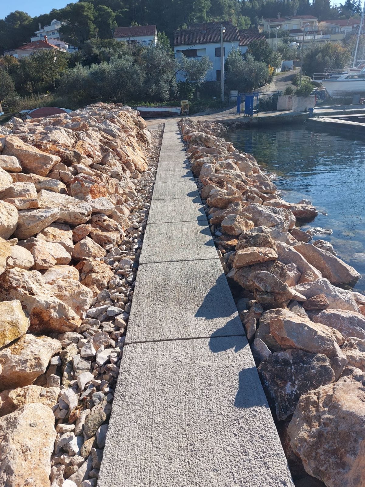 Radovi na sanaciji obuhvatili su izvedbu novog zaštitnog kamenometa tj. školjere te betonske staze na strani lukobrana prema luci.