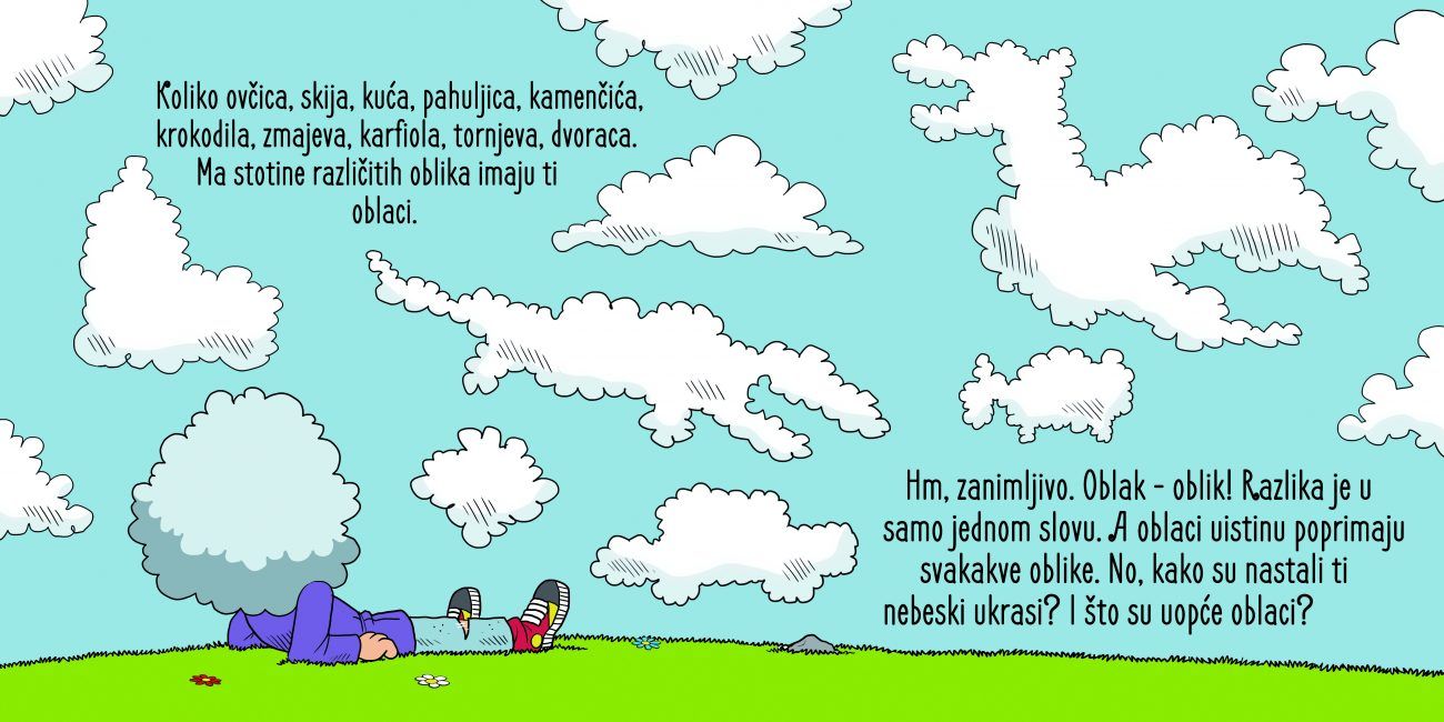 No, neprijeporno je da u „Oblačastoj“, osim Vedranine priče o oblacima, postoji još i bojanka, preme-taljke, rebusi i križaljka – ili bolje reći – ispunjaljka. Naravno, puna oblaka.