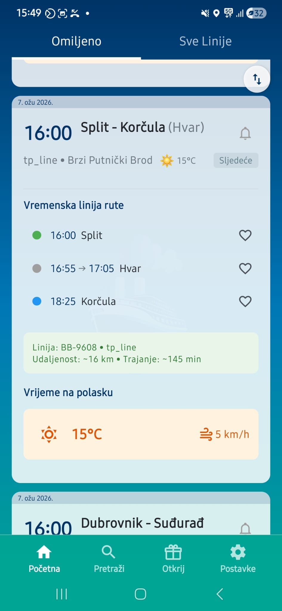 Jeste li ikad žurili na trajekt i samo trebali znati: kad ide sljedeći? Zato je izrađena aplikacija Vapor. Bez kopanja po web stranicama, bez provjeravanja više operatera, bez nagađanja koji plovidbeni red vrijedi danas. Vapor pokazuje ono što je bitno. Aplikacija je potpuno besplatna i namijenjena svim ljudima koji žive trajektni život - bilo da putujete na posao, posjećujete obitelj na otocima ili prvi put istražujete Jadran. I da, radi offline. Jer WiFi na trajektima? Budimo iskreni. 99 luka. 64 linije. Napravljeno sa srcem u Hrvatskoj - stoji u opisu aplikacije, koju smo odlučili malo podrobnije istražiti, kao i čovjeka koji ju je projektirao.