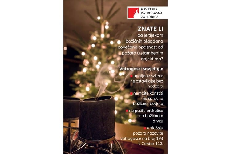 U predstojećem adventskom razdoblju povećava se opasnost od izbijanja požara u stambenim objektima zbog neopreznog korištenja blagdanskih dekoracija, od lampica do svijeća i prskalica. Osobito je važno naglasiti kako suha božićna drvca i razne plastične dekoracije lako gore te se požar brzo može proširiti na okolni namještaj.