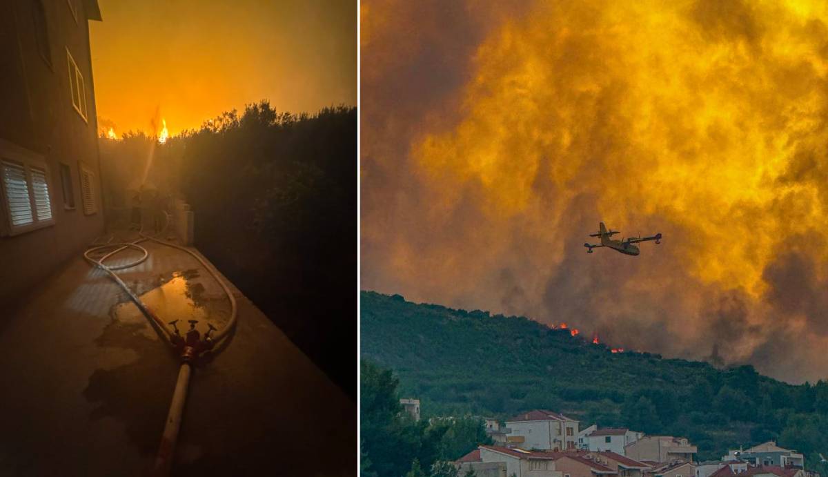 Ustvrdio je da štete ima na maslinicima i smokvama. Dok kanaderi lete, naselja su bez električne energije, a Jadranska magistrala ostaje zatvorena jer se vatrogasna vozila i dalje nalaze na prometnici.