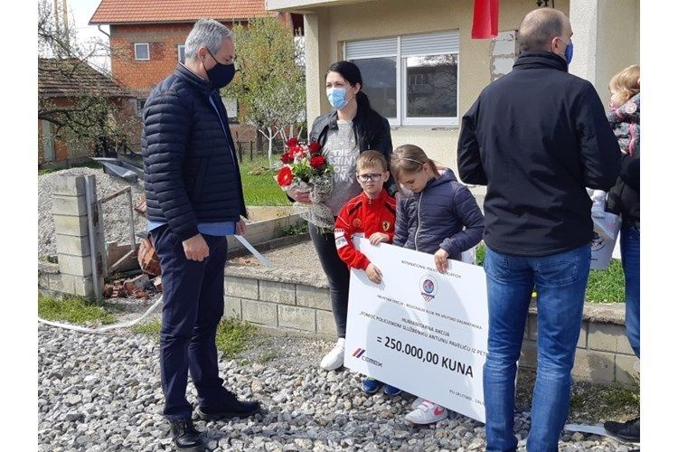 Tako su danas, 8. travnja policijskog službenika Antuna i njegovu obitelj iz Petrinje posjetili načelnik Policijske uprave splitsko-dalmatinske Slobodan Marendić, predsjednik regionalnog kluba IPA Split Perica Orešković te predstavnik tvrtke Cemex iz Kaštel Sučurca Ivan Ivanović.