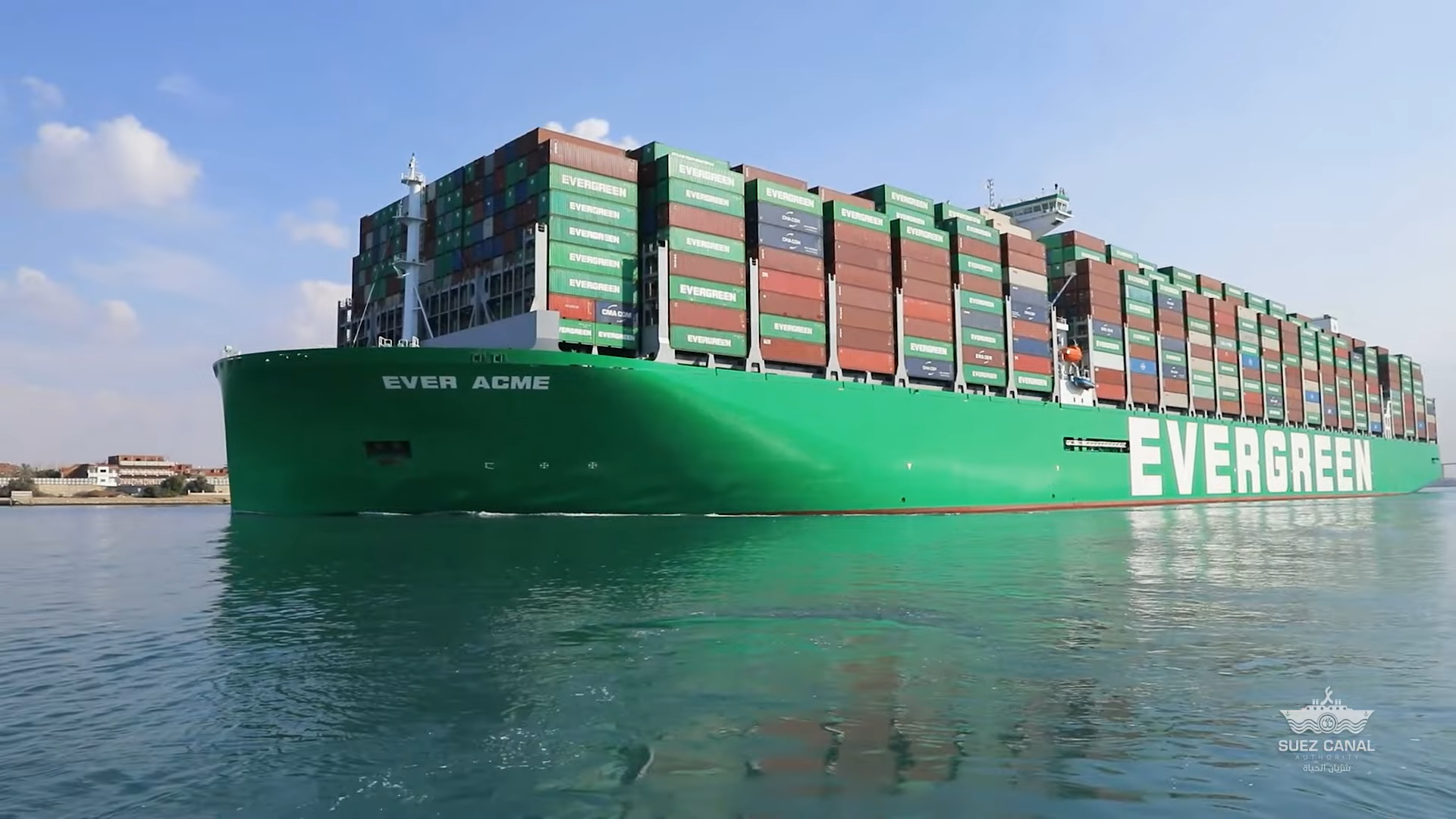 Kontejnerski brod Ever Acme kapaciteta 24.000 TEU, tijekom svog prvog putovanja od Malazije do Nizozemske, 3. veljače, prošao je kroz Sueski kanal. Brod je najnoviji dodatak floti brodova Serije-A tajvanskog brodara Evergreen, a može prevoziti 24.000 kontejnera.