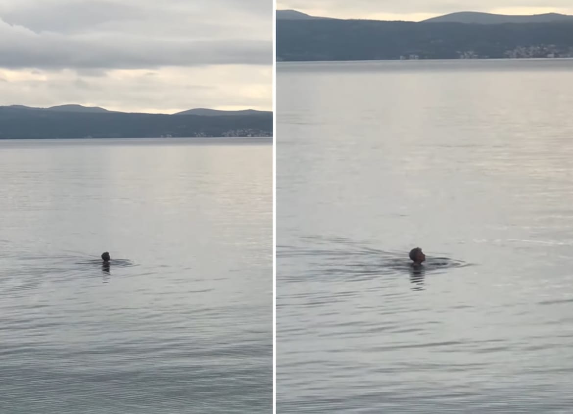 Jedna je hrabra gospođa u petak popodne mirno plivala u moru na splitskoj plaži Žnjan nedaleko hotela Amfora.
