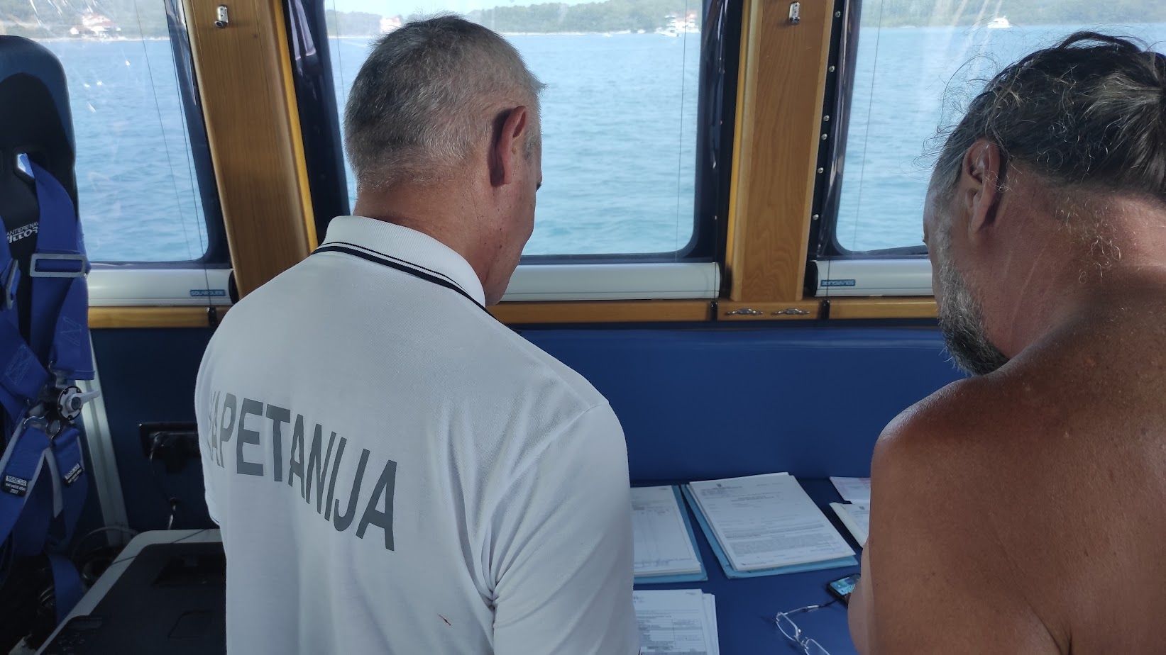 Ljuti se mladi skiper i njegova posada što snimamo, ljuti se i na postupak Lučke kapetanije, no lučki kapetan Alen Rukavina ga smiruje i vrlo brzo pokazuje tko je taj koji određuje pravila na moru. Predstavnik države pregledao je dokumente i pustio ga uz upozorenje.