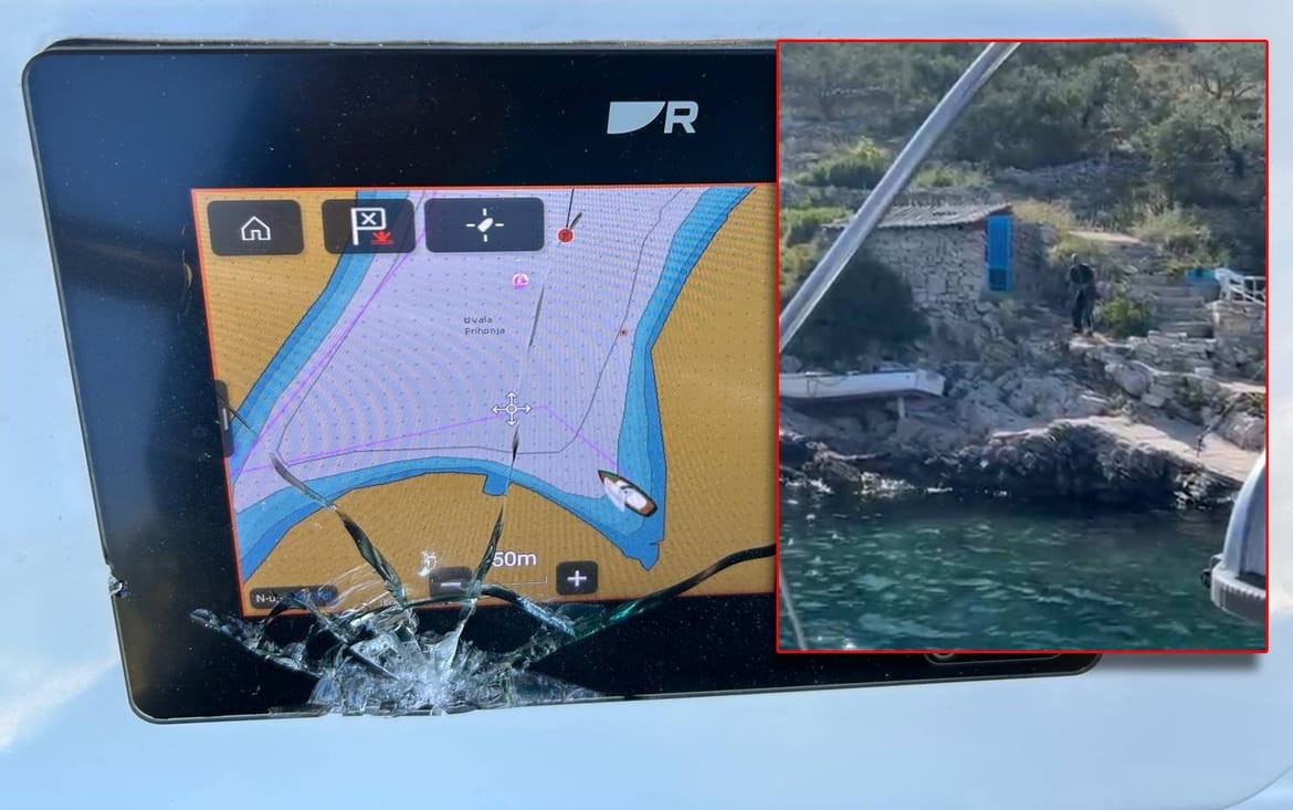 - Čovjek je bacio sidro oko 16 sati i odmah nakon sidrenja je taj gospodin izišao, počeo vikati i prijetiti. Pogodio ih je kamenom, te je na plovilu vidljivo 5-6 oštećenja trupa, a uništen je i ploter, kao što se vidi na ovoj slici. Odmah potom, gosti su digli sidro i otišli od tamo - priča nam Patrik iz iz ove dubrovačke tvrtke.