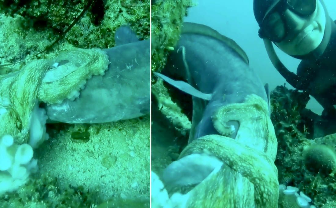 Nakon duge borbe, oboje iscrpljene pronašao je Danijel Haluška u jednom zaronu i zabilježio svojom kamerom.