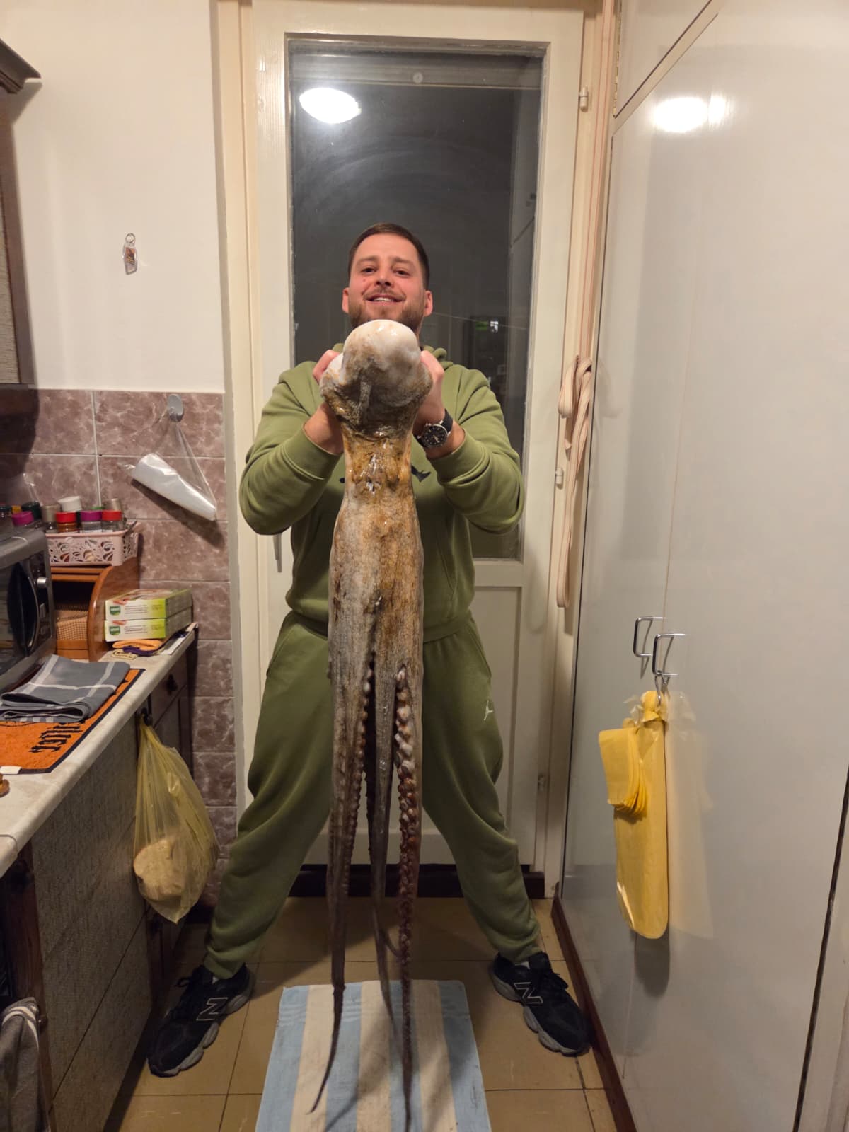 HVAR - Podvodni ribolovac Ante Klobučar iz Splita jučer je došao na svoju skrovitu poštu i posrećilo mu se. Naletio je na hobotnicu veliku gotovo kao i on sam, a visok je, kaže, 181 cm.