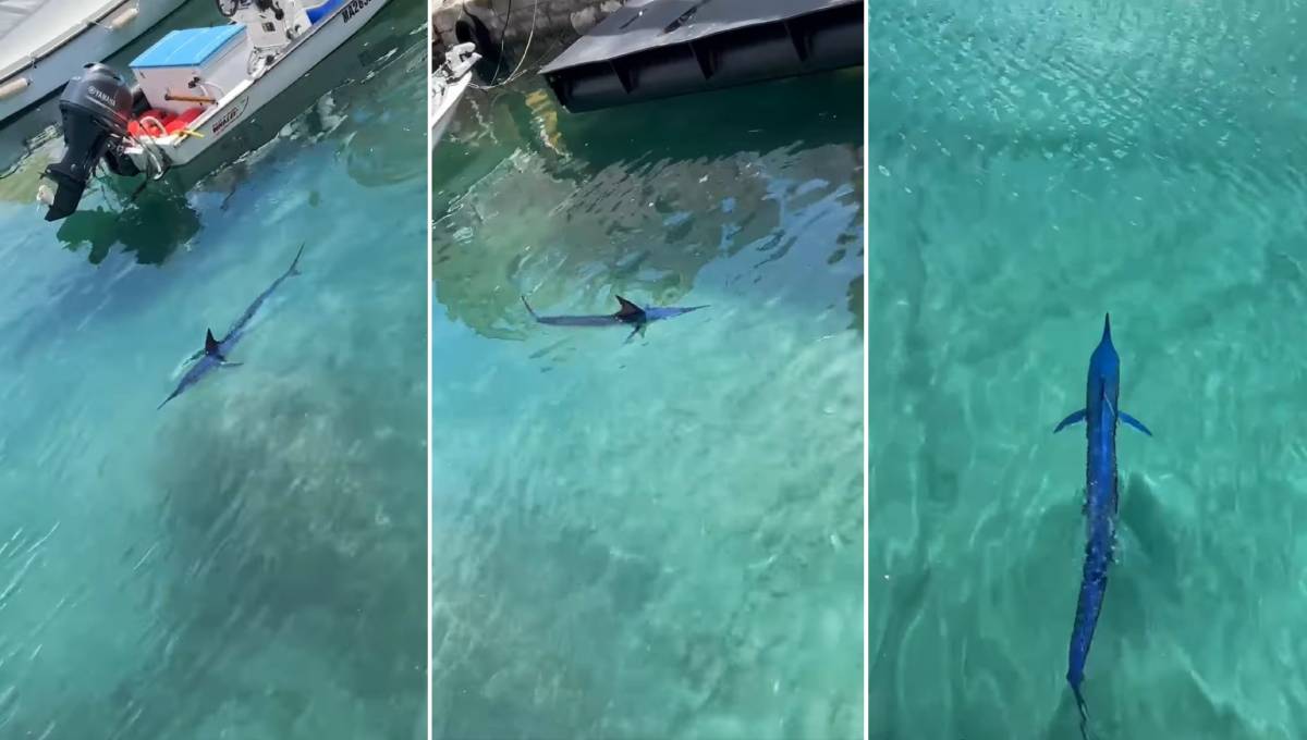 MAKARSKA - Makarane i njihove goste zatekao je ovih dana veliki iglan, dulji od dva metra koji je kružio između brodica.