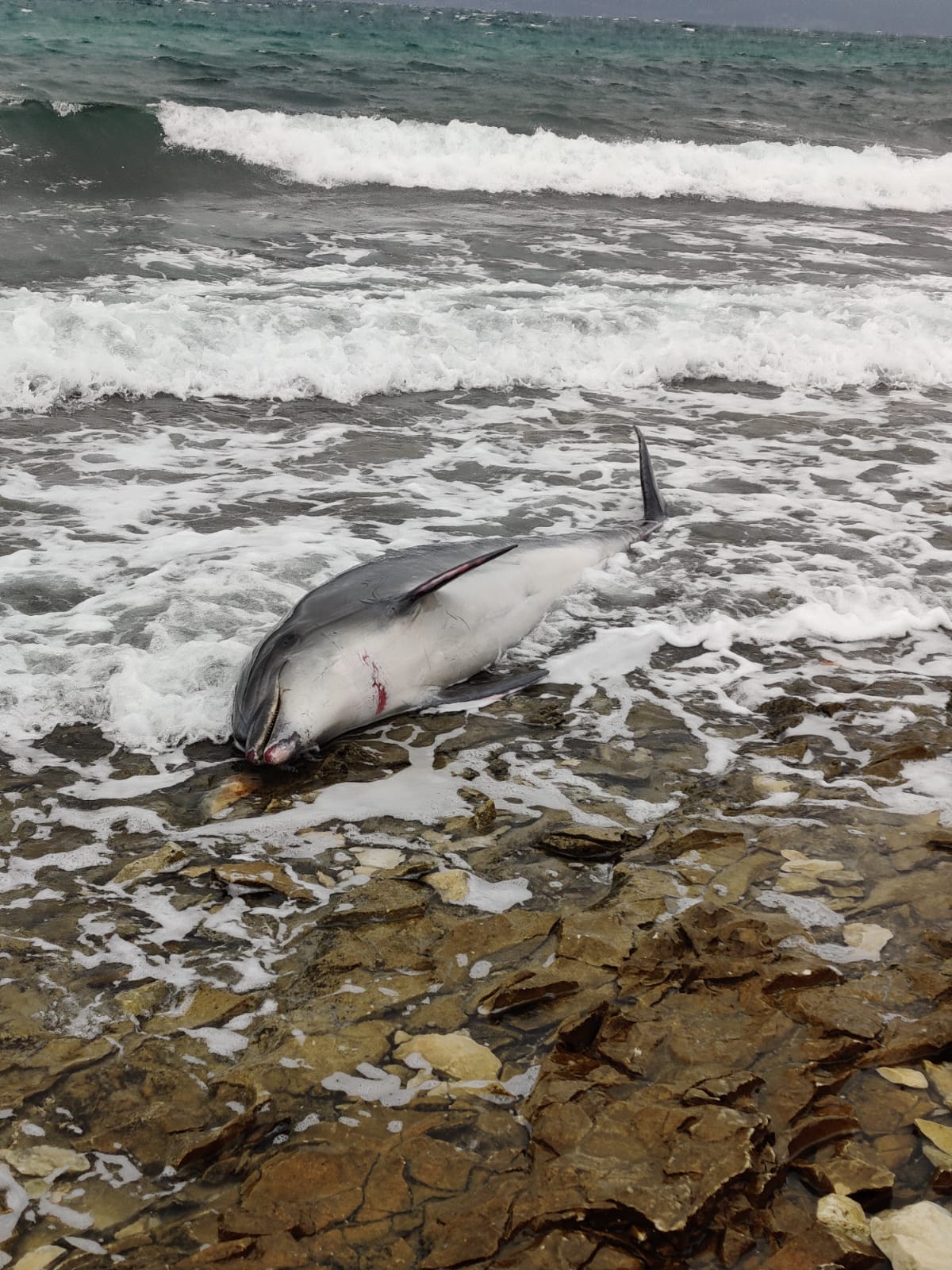 Prema vidljivim ozljedama na čeljusti i ispod vrata, dupin je, kako se čini, nažalost uginuo od nekog vanjskog uzroka. Vrlo moguće da se radi o ribarskoj mreži.