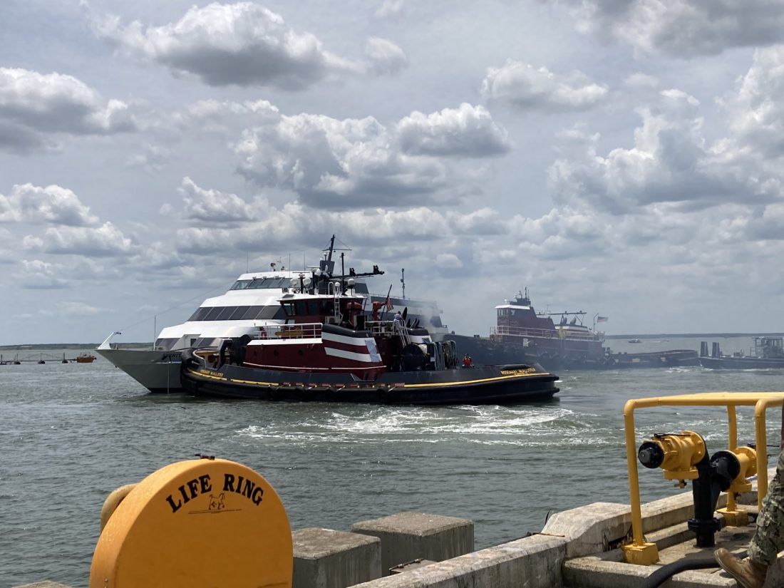 As we head into the evening hours, crews remain on scene NOB Pier 4 with the fire aboard the Spirit of Norfolk. Accessing the location of the fire continues to challenge all the agencies working together to battle this ship fire. pic.twitter.com/uUPDcPlRis