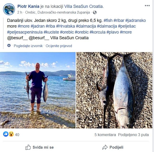 Niti 2 kg težak iglun plijen je Poljaka koji se na društvenim mrežama pohvalio ulovom zabranjene nedorasle ribe. Piotr Kania napisao je “Današnji ulov. Jedan skoro 2 kg, drugi preko 6,5 kg”, te locirao svoj ulov na poluotok Pelješac, Kućište, kod Orebića.