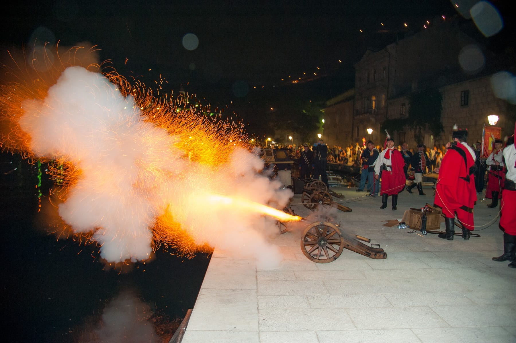 Nakon što se oko 21 sat održe polaganje vijenaca i svečani mimohod postrojbi Hrvatske vojske, subotnji program kulminirat će rekonstrukcijom čuvene Pomorske bitke (oko 22.30). Bakrani njome čuvaju spomen na pomorsku pobjedu nad Mlečanima daleke 1616. godine, istodobno prezentirajući jednu od najefektnijih turističkih atrakcija na ovom dijelu Jadrana (događanje je ove godine dobilo i priznanje Simply the Best kao jedna od najboljih turističkih manifestacija u Hrvatskoj). Pomorske gušte posjetitelji će moći osjetiti i na Masarykovoj obali, gdje će cijele subote biti vezan čuveni lošinjski loger „Nerezinac“, jedinstveni jedrenjak-muzej.