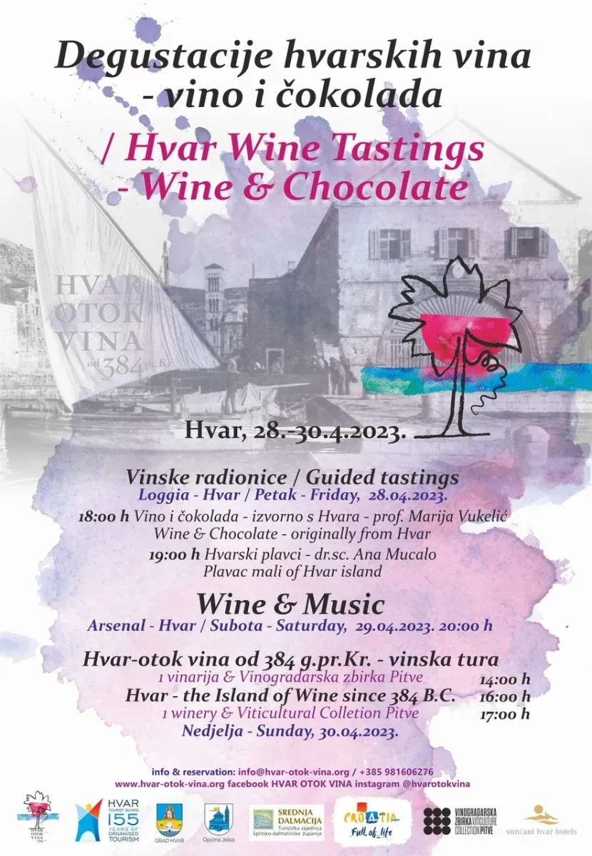Nadolazeći vikend na Hvaru nudi nekoliko zanimljivih aktivnosti posvećenih sljubljivanju vina i čokolade. U petak 28. travnja 2023. održat će se dvije tematske radionice u Loggi.
