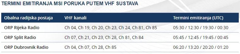 Uprava sigurnosti plovidbe Ministarstva mora, prometa i infrastrukture apelira na sve nautičare da prije izlaska na more poslušaju vremensku prognozu za pomorce/nautičare na VHF kanalima: