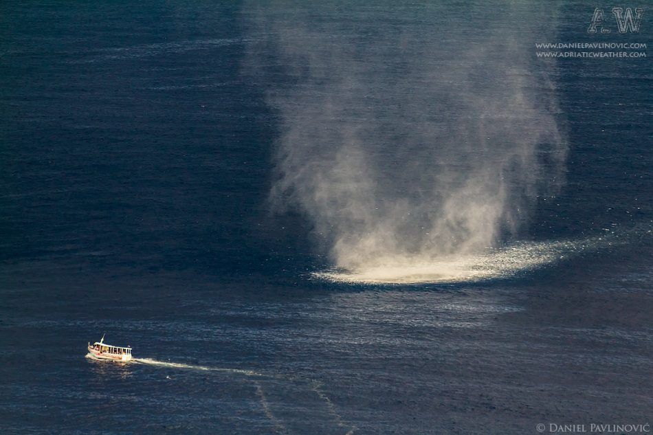 Veliku razliku u temperaturi: Topla i vlažna zračna masa iznad površine mora susreće se s hladnijom zračnom masom u višim slojevima atmosfere, što stvara izraženu atmosfersku nestabilnost.