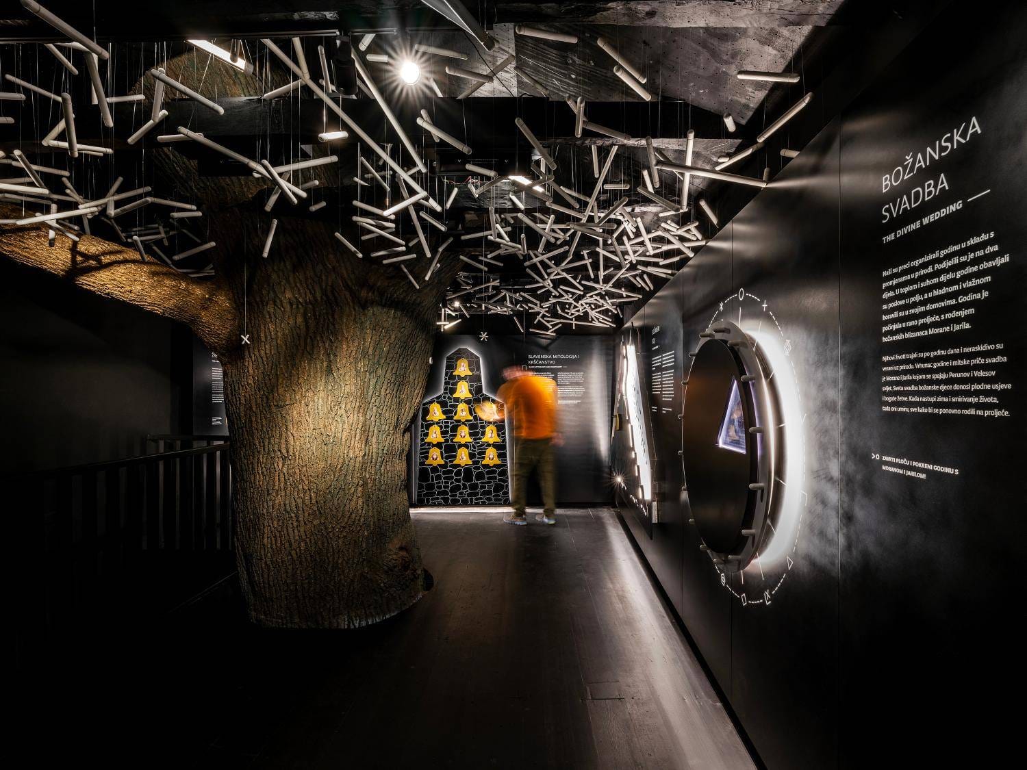 Središnji motiv izložbe, smještene u obnovljenoj ruralnoj kamenoj kući, monumentalna je maketa stabla svijeta koja simbolizira praslavensku kozmologiju. Protežući se na dva kata, maketa usmjerava posjetitelje na upoznavanje ključnih aktera praslavenske mitologije, otkrivajući tajne njihovih kraljevstava i njihov utjecaj na život ljudi.