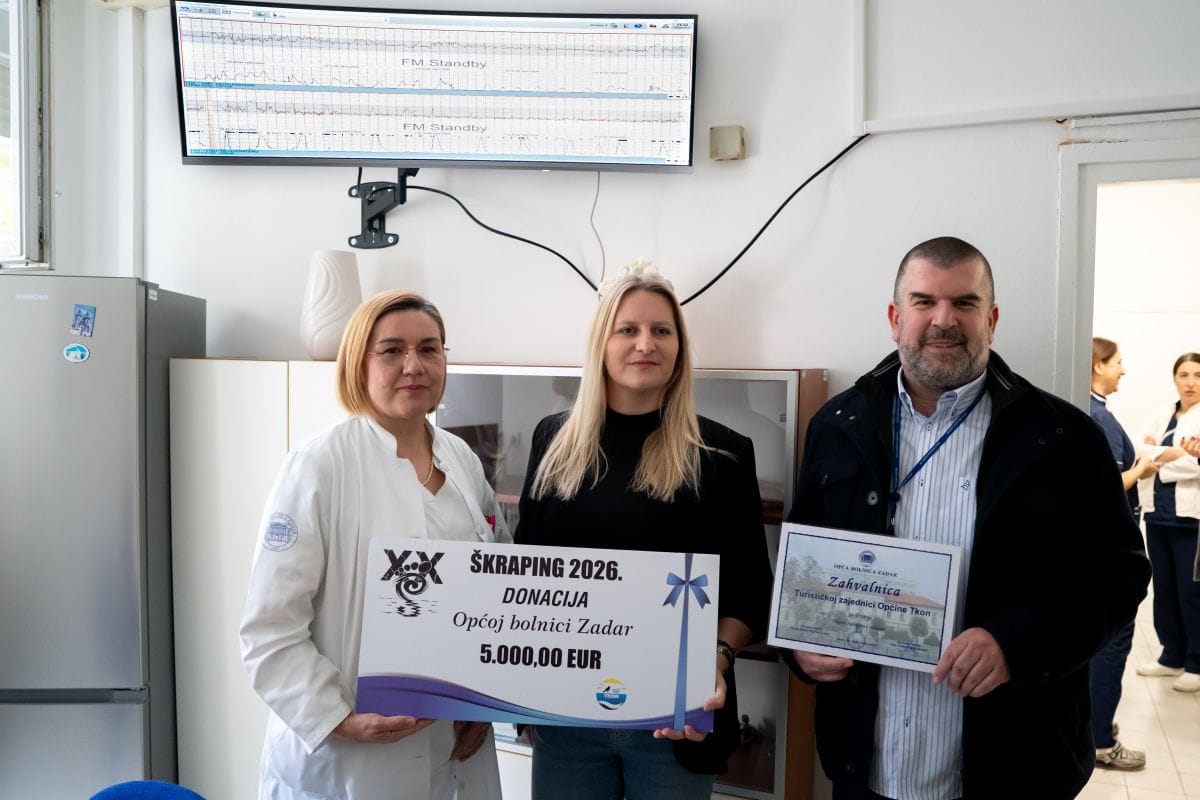 Tim povodom, direktorica Turističke zajednice Općine Tkon Jelena Ugrinić danas je uručila i ček na taj iznos voditeljici Odjela rađaonice i rodilišta dr. Mariji Palada Krpina, specijalist ginekologije i subspecijalist fetalne medicine i opstetricije, kao i zamjeniku ravnatelja Bolnice Bošku Katiću.