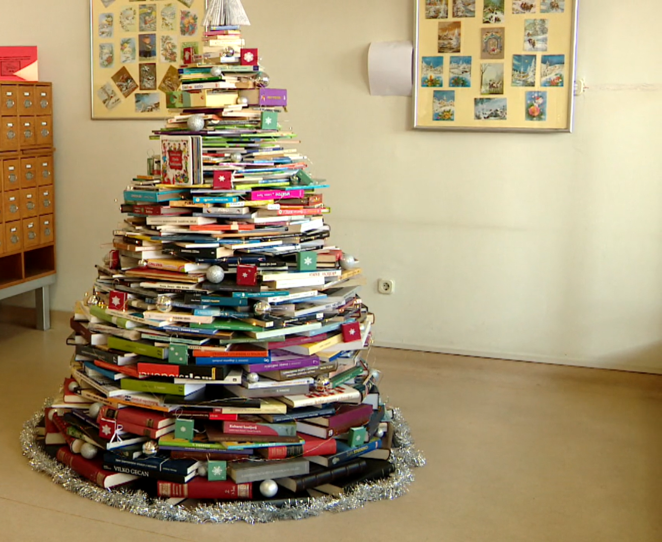 Ni same ne znaju koliko su knjiga ugradile u jedinstvenu novogodišnju instalaciju. Cijeli jedan radni dan su je gradile i dobro se zabavile. Od enciklopedija likovne umjetnosti do slikovnica.