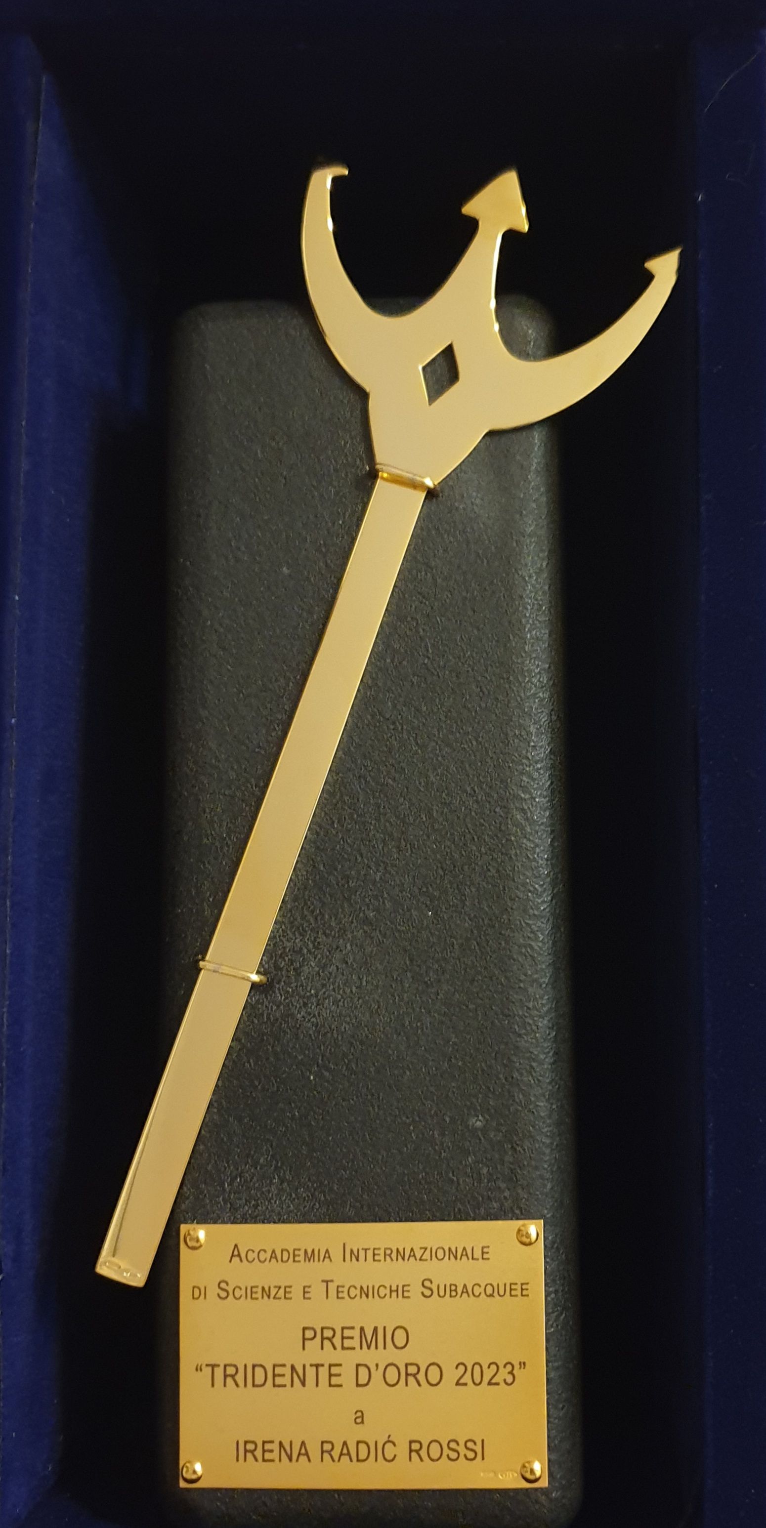 ZADAR - Izv. prof. dr. sc. Ireni Radić Rossi, koja je u hrvatskom podmorju provela veći dio svog radnog vijeka, dodijeljena je prestižna nagrada za predani rad na istraživanju, zaštiti i očuvanju podmorske arheološke baštine. Riječ je o nagradi "Zlatni trozubac"(`Tridente` d`oro), koju dodjeljuje Međunarodna akademija podvodnih znanosti i tehnika (Accademia Internazionale di Scienze e Techniche Subacquee / The International Academy of Underwater Science and Technology).