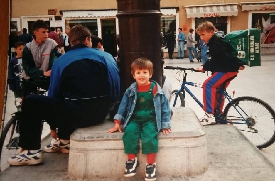 ZADAR - Dječak na biciklu s velikom sportskom torbom na leđima, intrigantna je fotografija koja se već neko vrijeme vrti po društvenim mrežama, na kojima se okupljaju Zadrani. Mjesto radnje je Narodni trg u Zadru, u prvom planu curica koju je mama željela fotografirati, a iza nje nekoliko dječaka i jedan, danas svima poznati lik koji nešto priča, a oni ga pozorno slušaju.