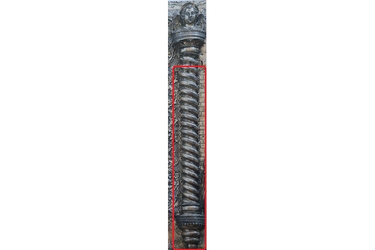 Na fotografiji je prikazan cjeloviti stupić, a dio koji još uvijek nedostaje je naznačen crvenom bojom.