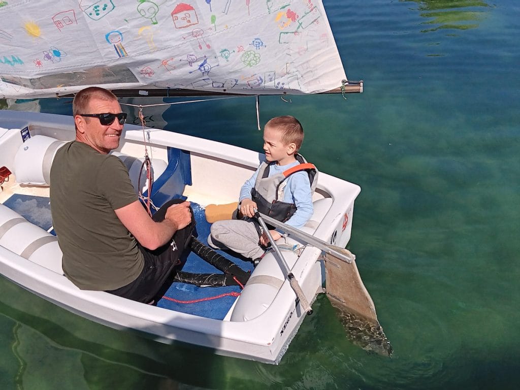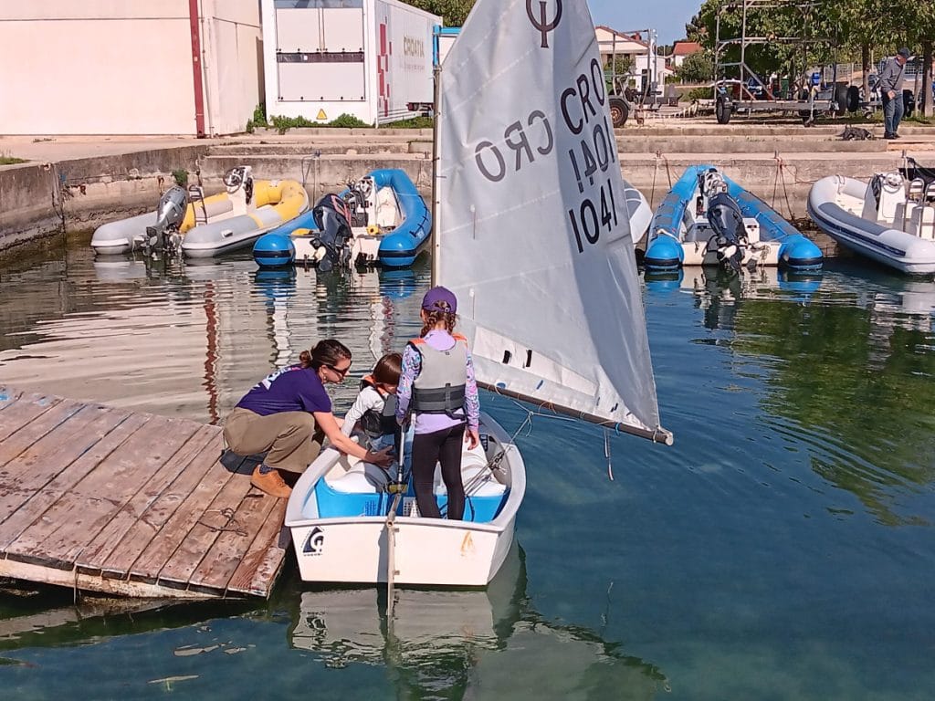 Nije lako bilo izabrati, a nekako je ispalo da se sigurnosnoga pojasa prvi dočepao Vito. I eto njega učas u jedrilici. Trenerica Mare i Valentina poučili su ga gdje će sjesti, gdje će postaviti stopala i sve drugo. Ohrabren je pljeskom. Onda su se Valentina i Vito otisnuli i jedrili, jedrili, jedrili… U jedrilicu su potom uskakali Leticija, Lejlani, Petar, Nika, Toni…