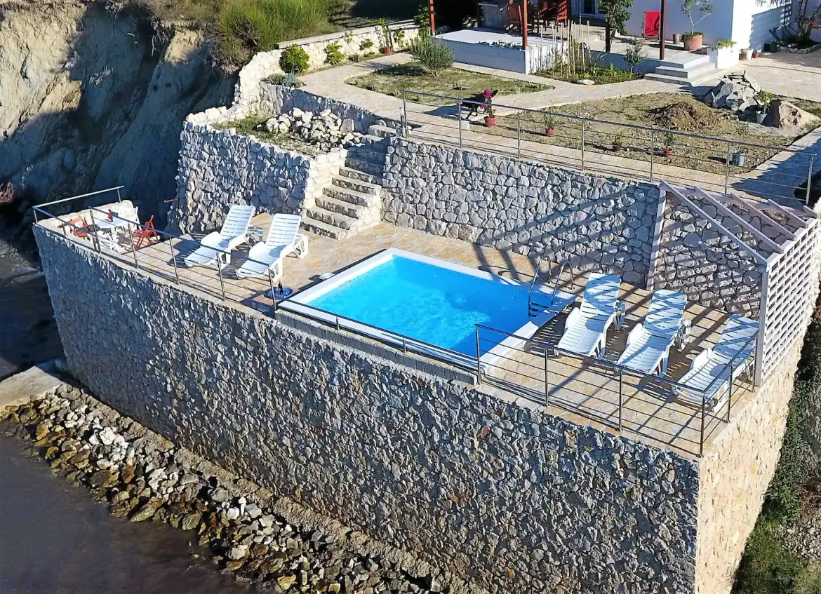 Jedan je tako vrlo iskreno i na sva zvona oglasio "Apartman Keka, izravno na moru". Nije čovjek pogriješio, jer na parceli koja ima zgodnu malu kućicu, stoji prošireno dvorište na dvije etaže, od kojih je ona niža sagrađena doslovno na moru. Pa kad se već gradi, neka tu i bazena, kako bi gostima "izravno na moru" i s morem bilo puno ugodnije. I eto zigurata iz povijesnih knjiga o Mezopotamiji.