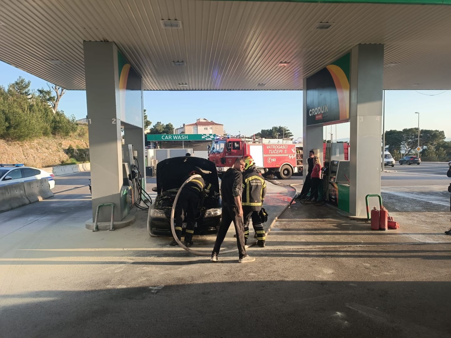 MAKARSKA - Nakon intervencije na šumskom požaru Veliko Brdo kod Makarske, vatrogasci iz Tučepa zaprimili su novu dojavu o požaru osobnog automobila na benzinskoj postaji.