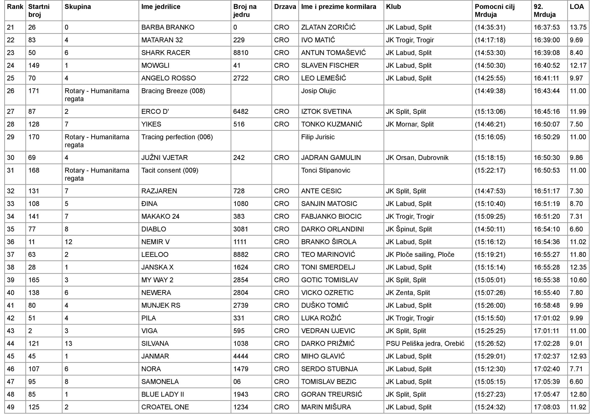 SPLIT - Pobjednik 92. Mrdujske regate krstaša, najstarije i najmasovnije regate na Jadranu, je posada "Maxi Jena MM" kormilara Miloša Radonjića iz JK Lahor iz Kotora!