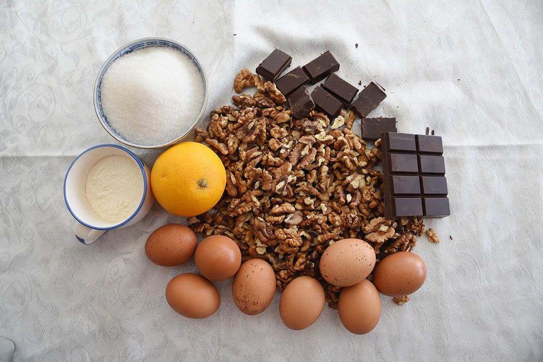 I onda orase sameljete, naranču kuvate na laganoj vatri po ure; odvojite žumanjca od bilanca. Bilanca izmiksajte malo kasnije da se ne razvodne; izmiksajte žumanjca i cukar nježno na pari rastopite čokoladu (prvih 10 deka), dodajte u žumanjce. U tu užbačenu smjesu dodajte izmiksanu i dobro usitnjenu naranču – mišajte.