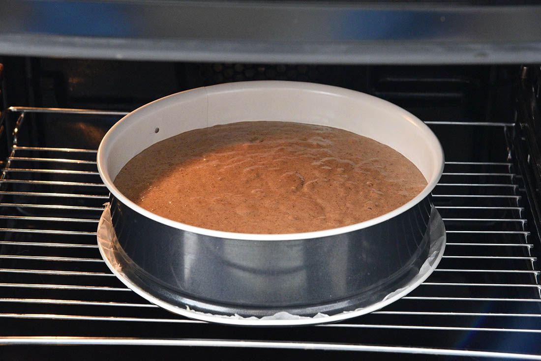 Dodajte one dvi žlice oštrog brašna. Izlijte smjesu u kalup i stavite u pećnicu na 180 50 minuta.
