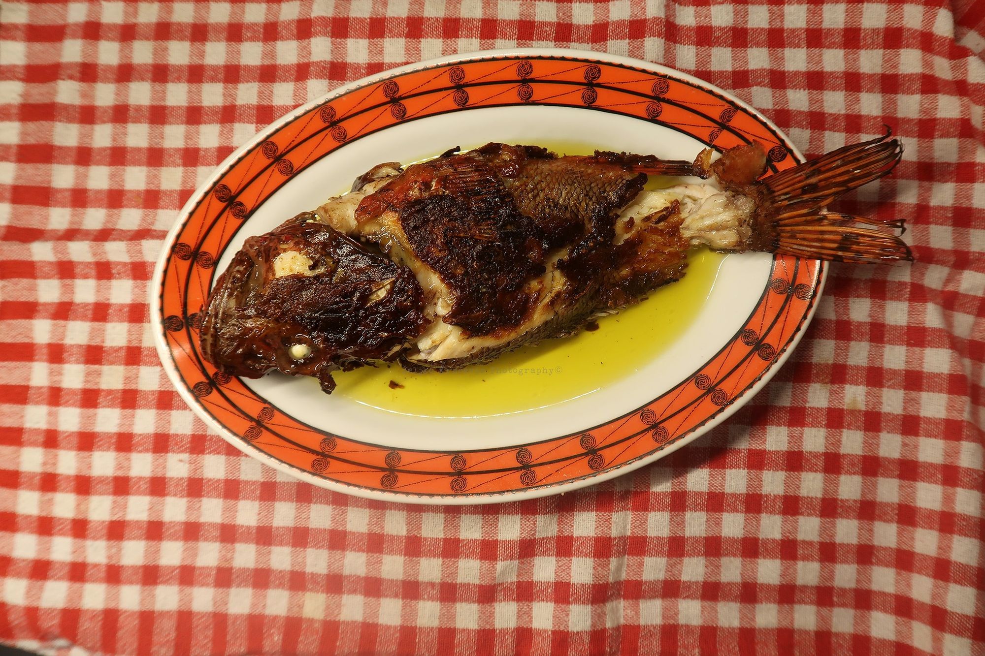 I još je jedna škrpinica išla na gril tavu. Kad je bila pečena, sol i uje, da upije lipo i primi okuse ploda naše svete Masline. Uza sve ovo, ostali su prči iliti muzgavci, a zaledili smo i teke repova od kozica.