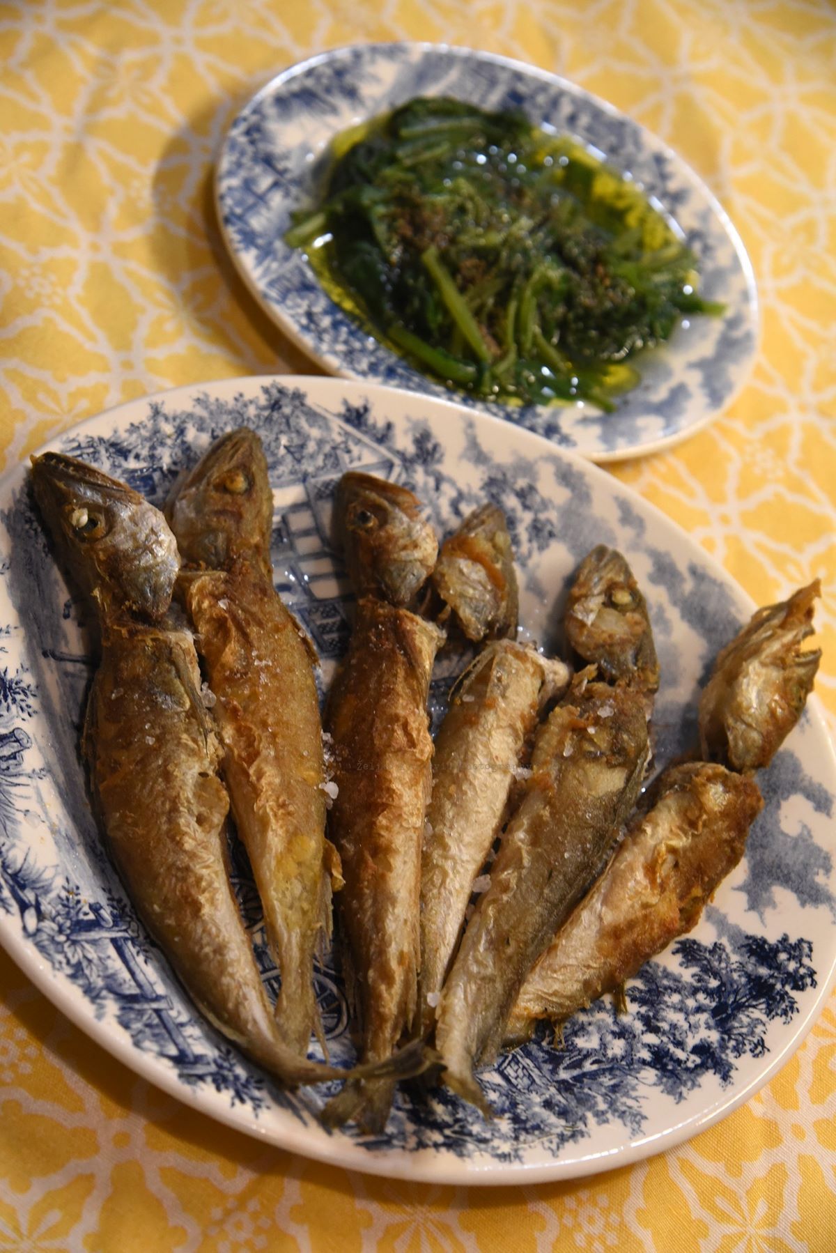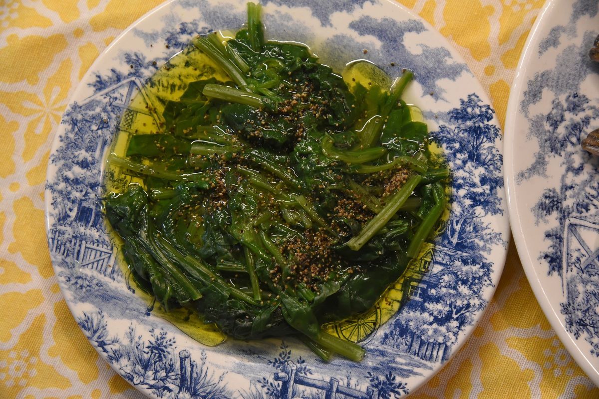 Kako se ja još moram čuvati radi skinute mrene, to je moja životna suputnica ovaj put stala uz špaker. Pa smo lipo spremili – odma nako friško iz mora, moliće frigane (znate ono, uvaljaju se u brašno, pa u ulje, pa kad su gotovi lipe krupne soli. Kad s malo kruva „potareš“ prazni pijat, onaj okus ulja, ribe i soli...) Ivinu špinjaču. Začinjenu krupnom soli iz Stona i paprom crnim turskim.
