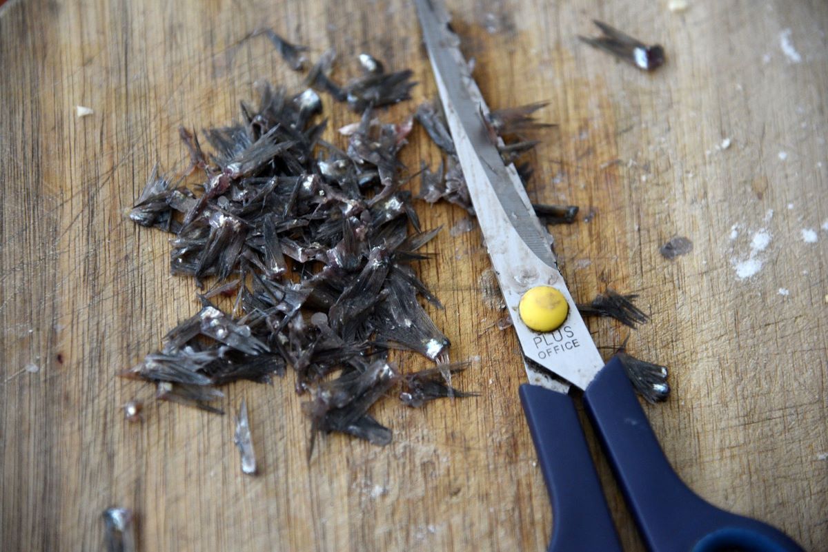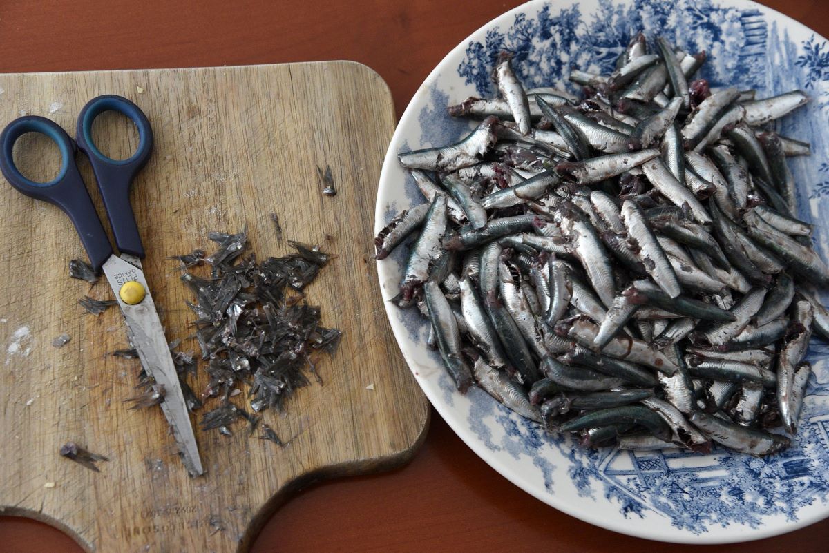 Ovaj put sam ima teke vrimena, pa sam napravija dvi stvari koje se sa srdelicama moraju napravit. Jednom me naučija naš dobri i pridragi, nažalost pokojni, Rudi Ninić. A to je, okinit nožicama iliti škarama repove.