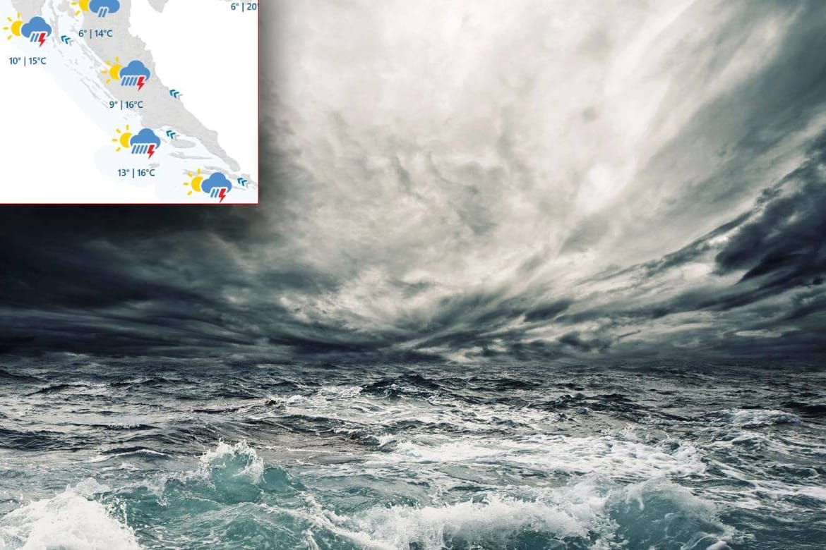 Već sutra u ponedjeljak, DHMZ pali žuti meteoalarm za cijelu našu obalu i to zbog vjetra, a na jugu se očekuje se i grmljavinsko nevrijeme.